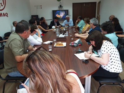 تناول اللقاء الذي جرى في مقر "الحق" عرضاً لحالة حقوق الإنسان في الأرض الفلسطينية المحتلة، وانتهاكات وجرائم إسرائيل، السلطة القائمة بالاحتلال، في الأرض الفلسطينية المحتلة، في مجالات متعددة، مع تركيز خاص على القدس المحتلة ولا سيما سياسة التهجير القسري وتشتيت العائلات المقدسية وتهويد مدينة القدس وفصلها عن محيطها، ونهب الموارد والممتلكات الطبيعية كالمياه، وبخاصة في منطقة الأغوار.