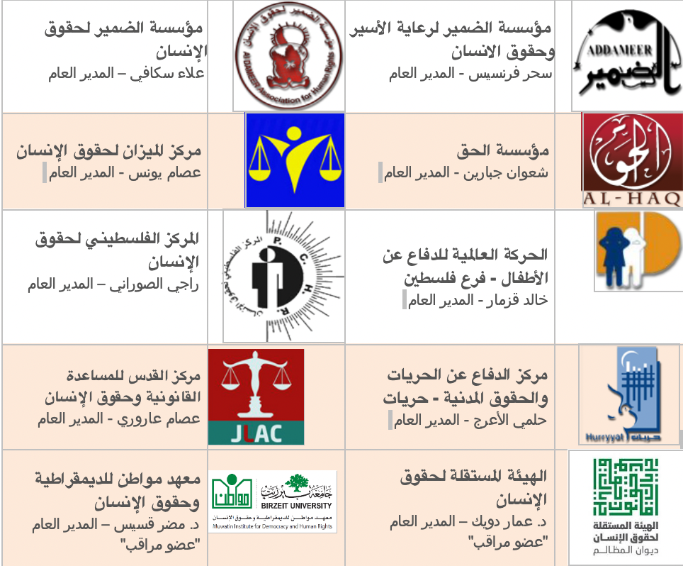 أعضاء مجلس منظمات حقوق الإنسان الفلسطينية: