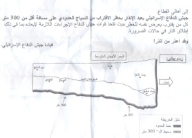 During the previous week, the Israeli military dropped numerous leaflets in Arabic on the Gaza Strip. The leaflets included two maps of the Gaza Strip with warnings for the population not to approach the border with Israel and about the danger posed by the Palestinian militants operating in the Gaza Strip.